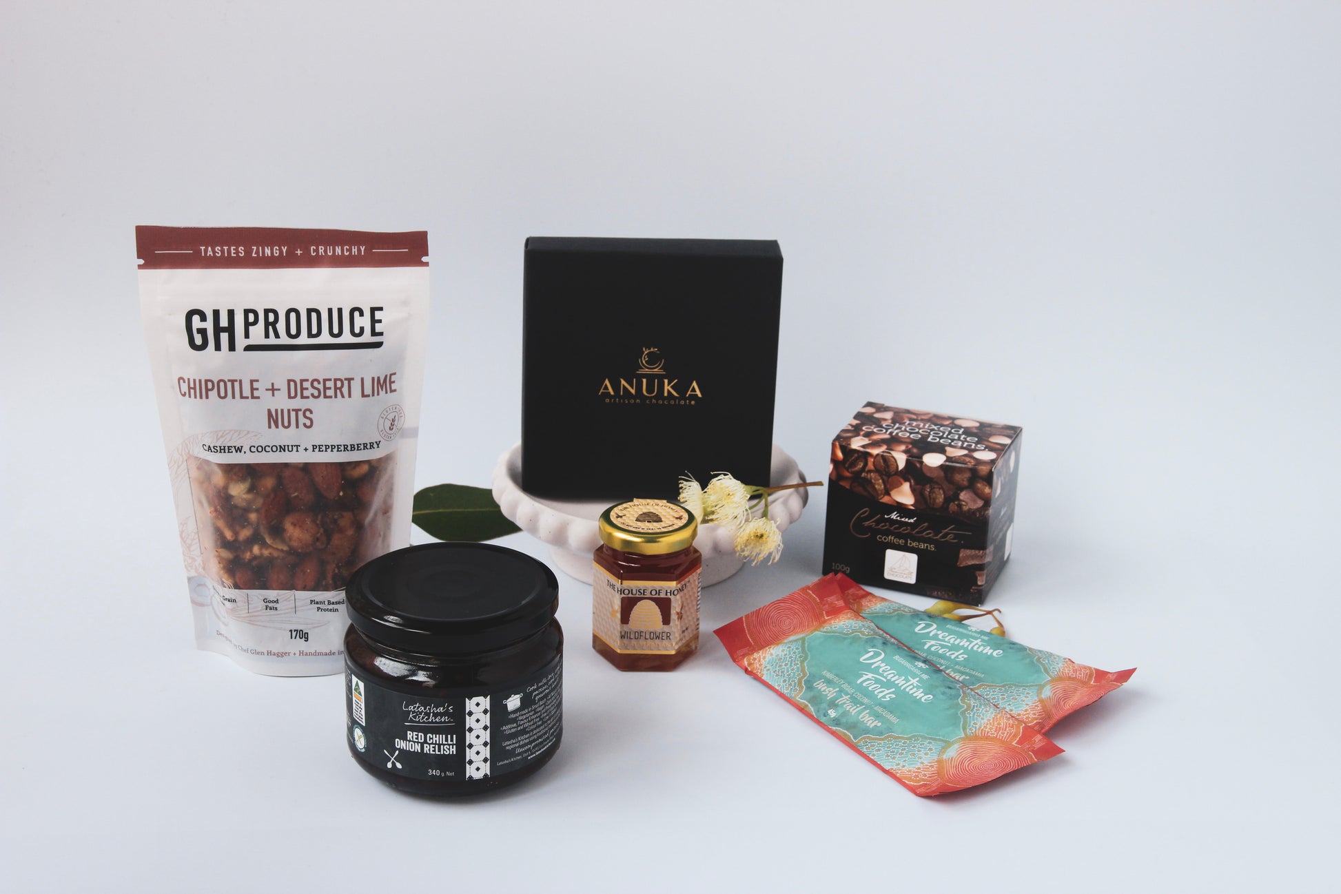 Discover the bold and vibrant flavours of Western Australia with our Gourmet Sweet & Spice Hamper. Curated to celebrate the creativity and craftsmanship of local small businesses in Western Australia.